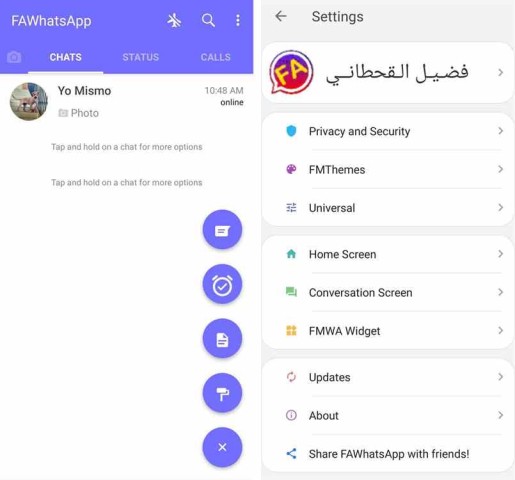 - ไปที่หน้าจอหลักของ FAWhatsApp APK ทันที